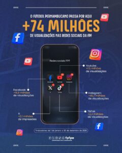 Ao longo de 2025, a Federação Pernambucana de Futebol alcançou mais de 74 milhões de visualizações somando todas as suas plataformas, ampliando a visibilidade das competições, clubes, atletas e da arbitragem do nosso estado.