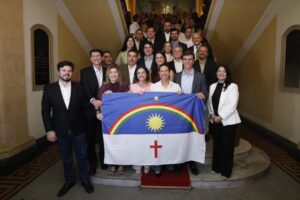 Na noite desta quinta-feira (26), a governadora Raquel Lyra assinou o termo de posse nomeando a nova secretária de Desenvolvimento Econômico (Sdec), Danielle Jar Souto. No evento, a chefe do Executivo Estadual também anunciou as novas presidências do Porto do Recife e do Laboratório Farmacêutico do Estado de Pernambuco (Lafepe), Wagner Augusto de Godoy Maciel e Thiago Ângelus Conceição Brandão, respectivamente. A vice-governadora Priscila Krause também participou da solenidade, que lotou o Salão das Bandeiras, no Palácio do Campo das Princesas, reunindo prefeitos, deputados, secretários e representantes da sociedade.